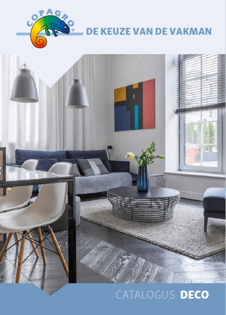 Als schilder-decorateur sta je in voor een verfijnde inrichting en afwerking van een woning, die perfect past bij de stijl van de eigenaar. En daar helpen wij je bij Copagro graag bij. Neem een duik in onze catalogen en vind producten en materialen die je nodig hebt om een perfect eindresultaat af te leveren. Keuze uit zo’n 6.000 producten, traditionele bestsellers aangevuld met een gezonde dosis nieuwigheden voor de durvers onder jullie, verdeeld onder 6 modules naargelang de productcategorie. Welke catalogus neem jij? Vraag ook naar je gedrukte exemplaar bij je Copagro dealer.