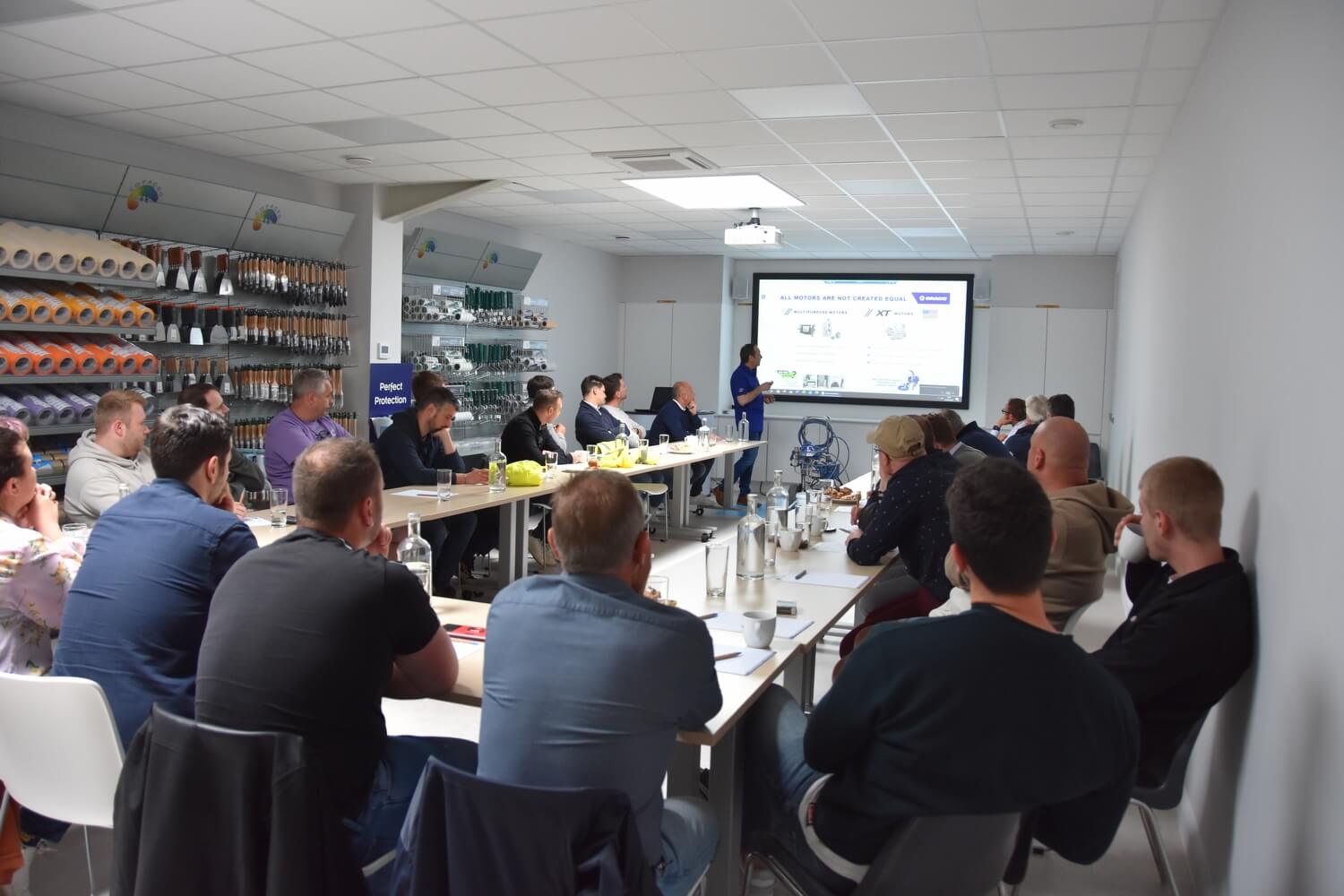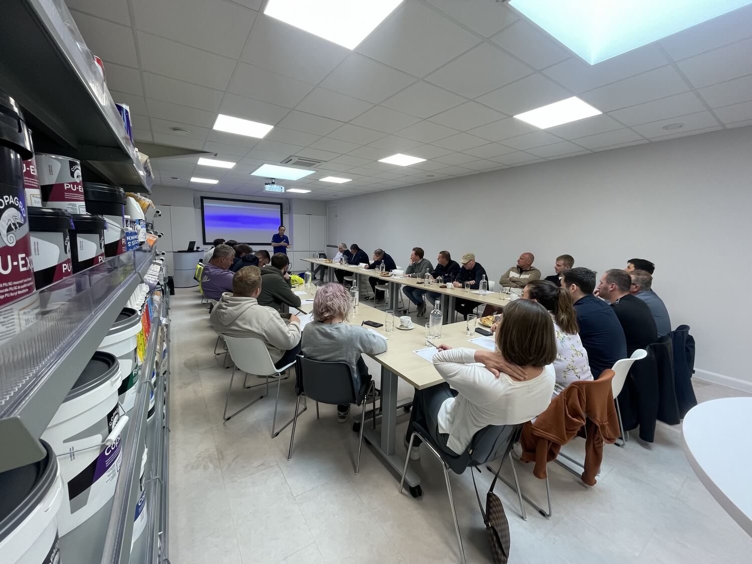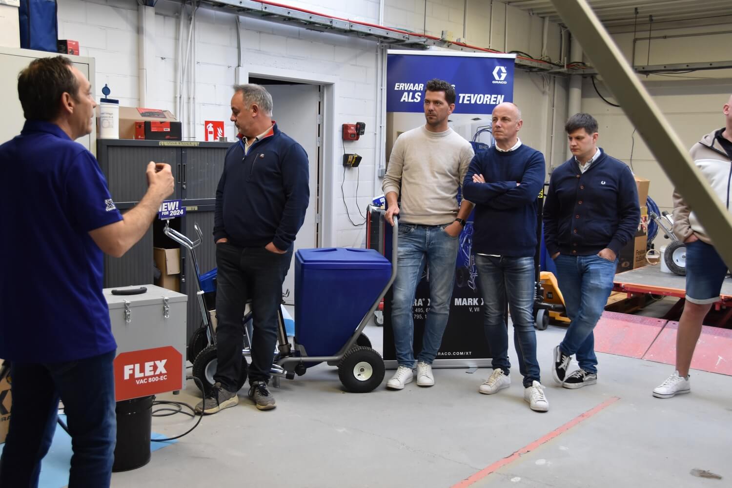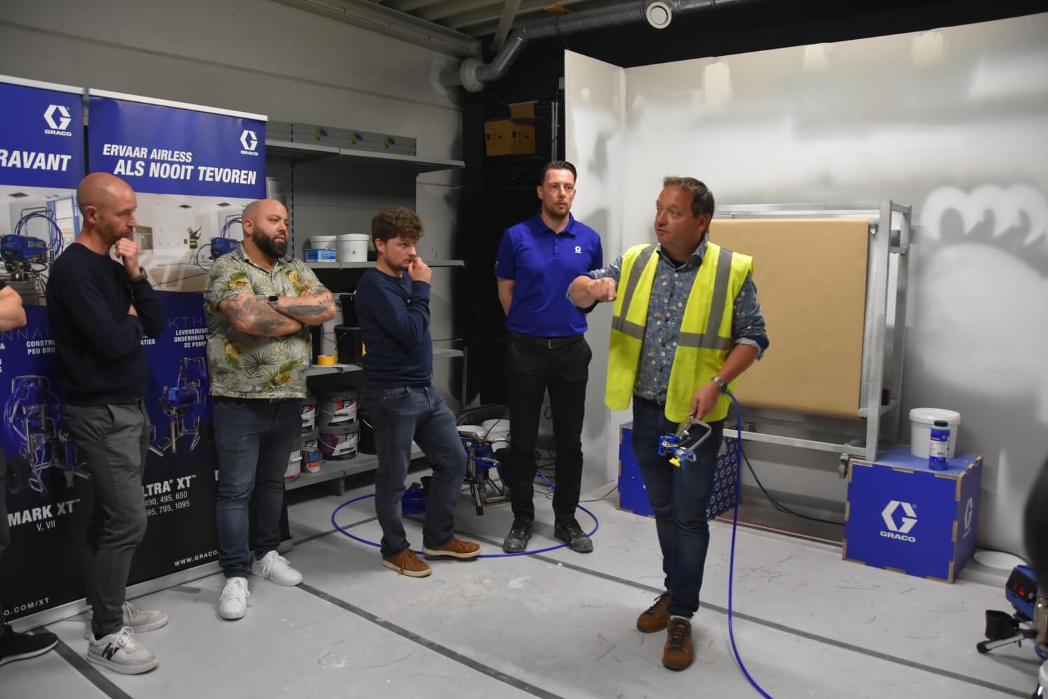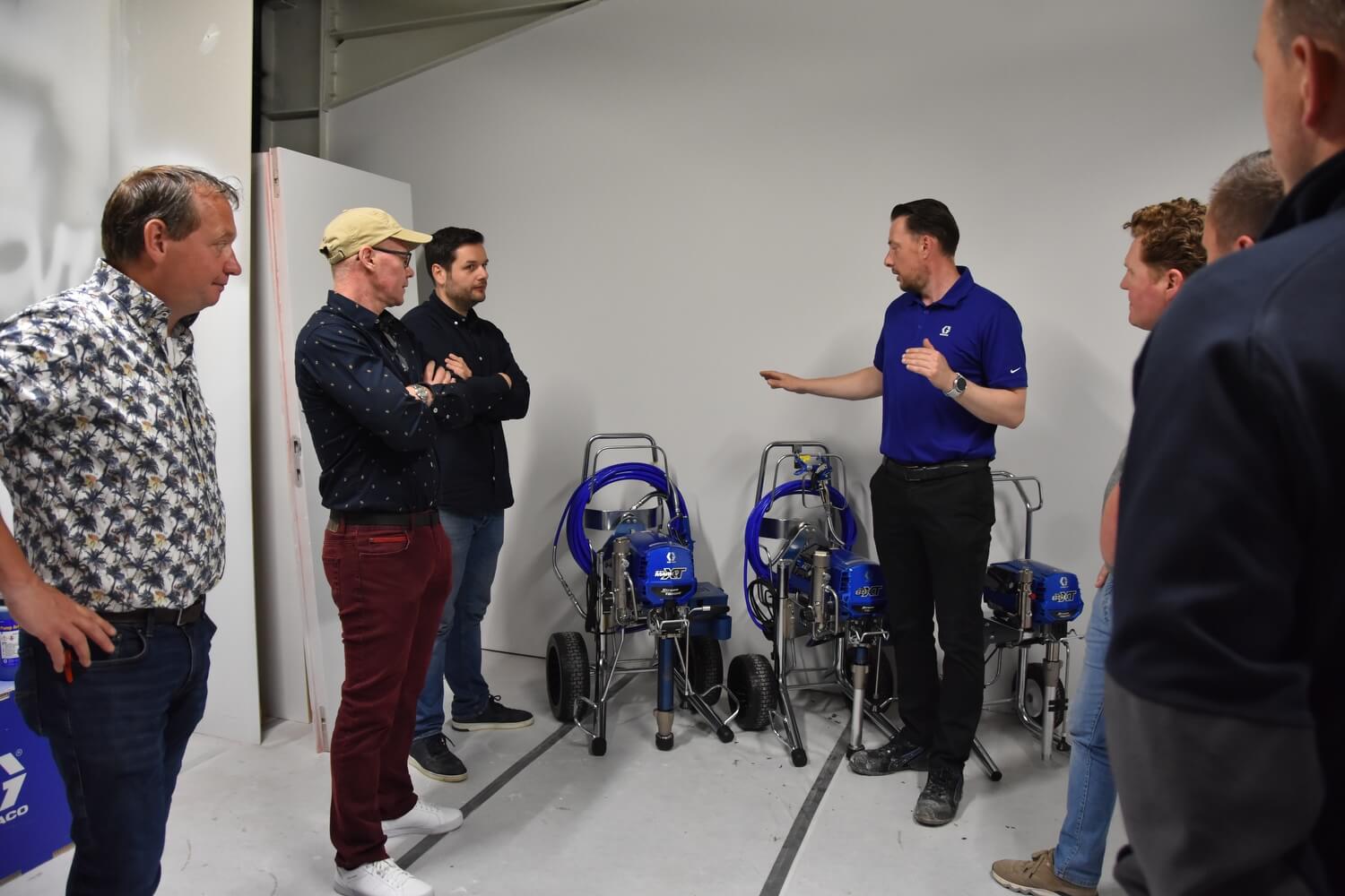De aanwezige leden reageerden enthousiast op de nieuwe technologie, die een ongeëvenaarde ervaring in airless spuiten biedt.